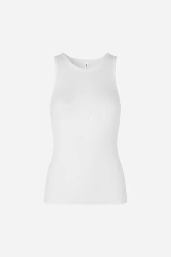 Ribbestrikket tanktopp med smal passform. Hovedmateriale laget av en elastisk økologisk bomullsblanding.