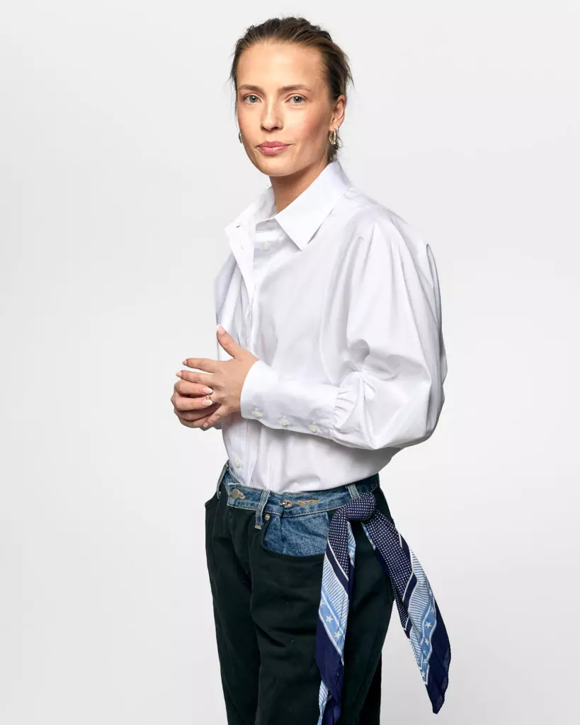 Anne Solid overshirt er laget i en fin twill-kvalitet med 35% superstreth, som gir eksepsjonell bevegelighet og komfort. Skjorten er slitesterk og har en passform som holder seg. Med sitt avslappende, oversized snitt og myk krage får du et moderne uttrykk kombinert med høy komfort. Skjorten er lengere bak.