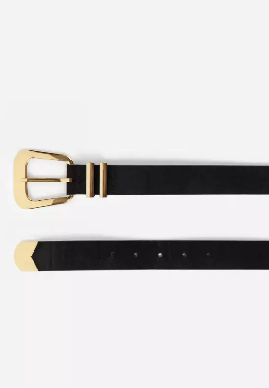 Bennett-beltet har en metallspenne i sølv- og gulltoner for en dristig effekt. Det er laget av 100 % kuskinn og er det perfekte tilbehøret for å definere midjen din med uanstrengt stil.