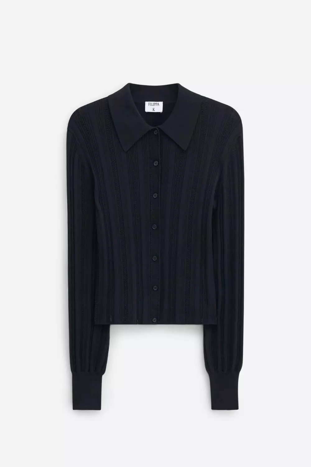 Lett viskosecardigan i flettet pointelle-strikkemønster med normal passform.