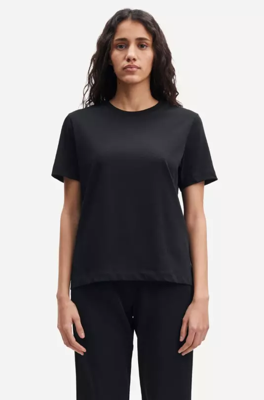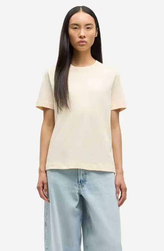 Kortermet t-skjorte. Rund hals med ribbekant. Avslappet passform.