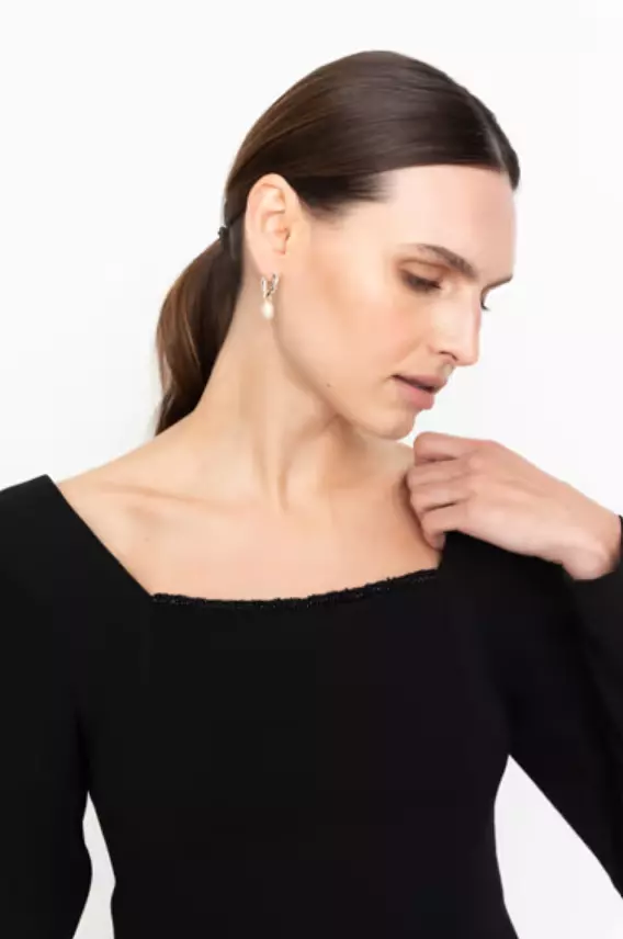 Cosmic Top er designet for en figursydd silhuett, lange ermer og en perlestrikket halslinje med en dristig utskjæring foran. Den skjulte glidelåsen sikrer en sømløs, raffinert finish.