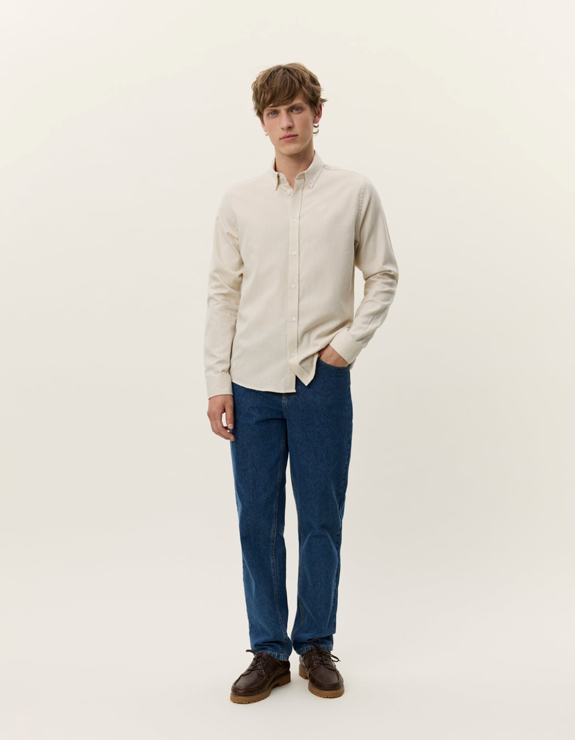 Skjorte fra Les Deux i børstet bomull for mykhet og varme, og har en slank og stilfull passform.