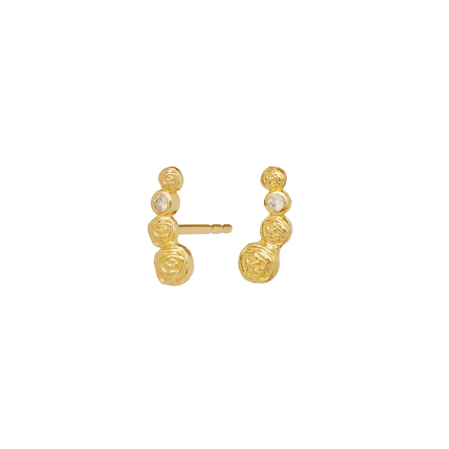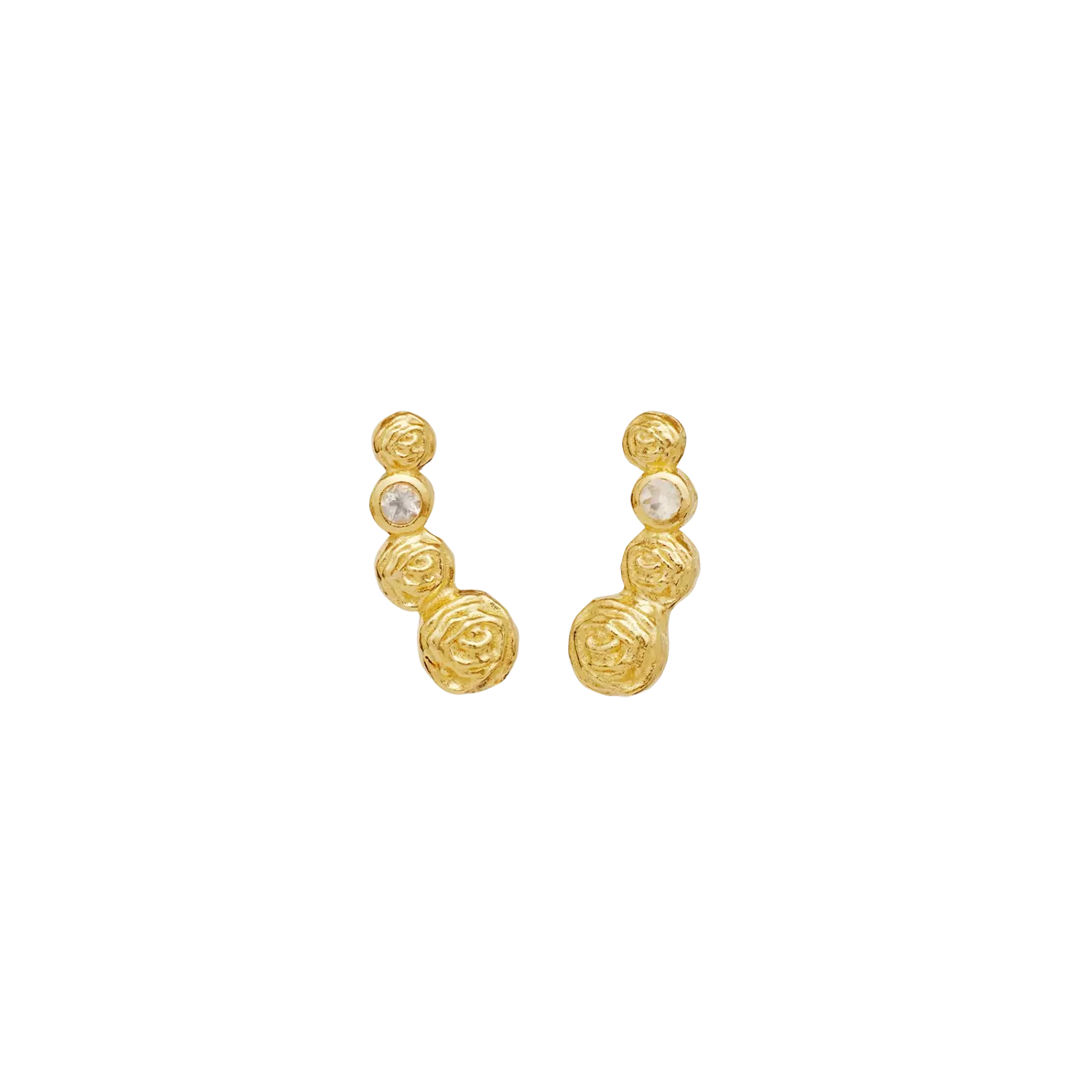 Ingen blomst er vakrere enn rosen. Sammen med en enkel regnbuefarget månestein kryper Diantha-øredobbene langs øret og symboliserer evig blomstrende kjærlighet og lidenskap.