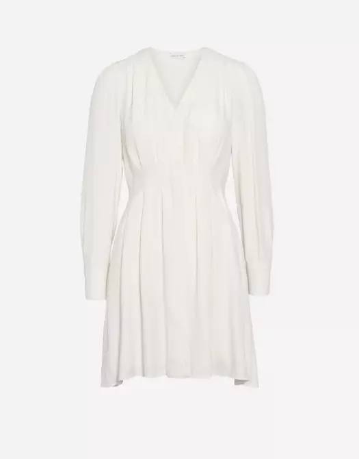 Felicia Dress er laget av en delikat viskose, rayonblanding. Den har plisserte detaljer i midjen, som skaper en flatterende form og volum. Kjolen har V-hals med skjulte knapper ved stolpen og lange ermer med mansjetter og knapper for en elegant finish.