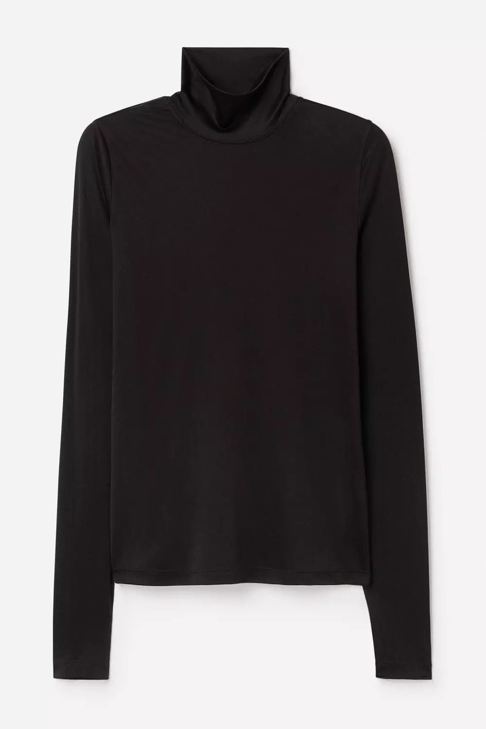 Fitted Jersey Turtleneck fra Filippa K. En smal turtleneck med høy hals i skinnende stoff.