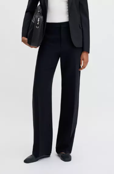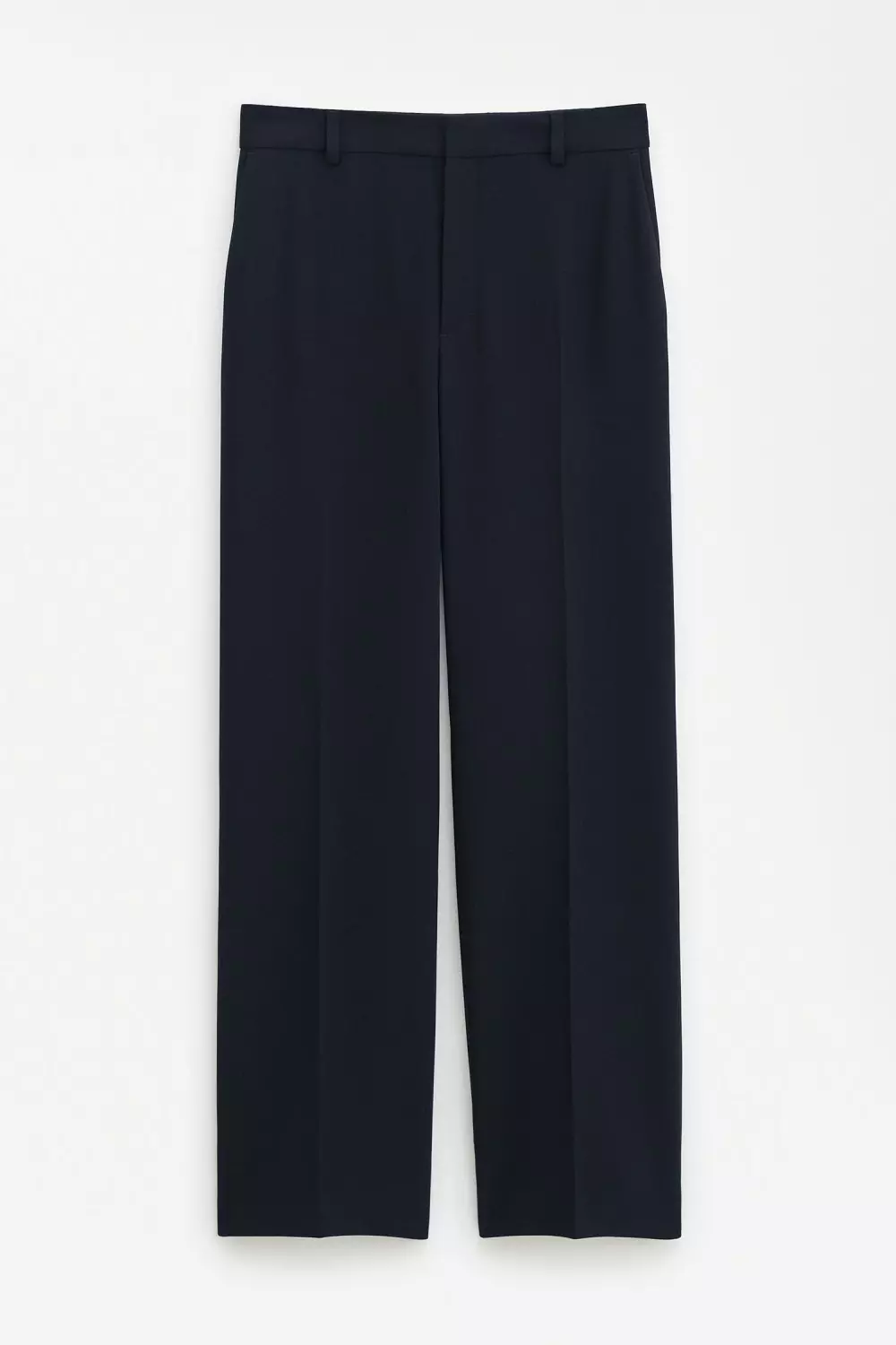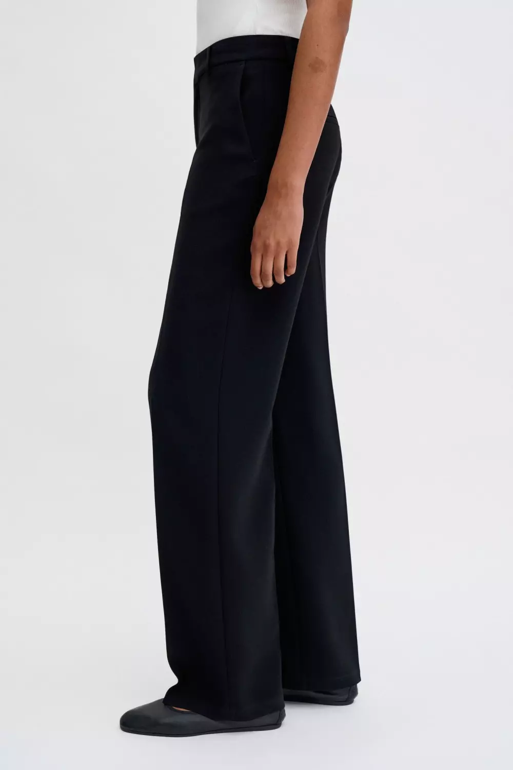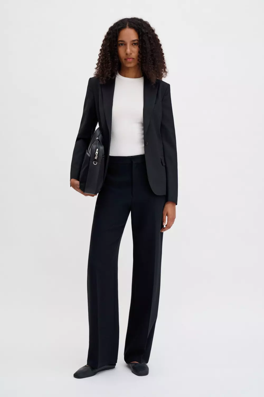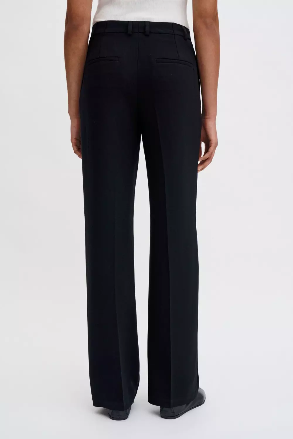 Hutton trouser fra Filippa K. Designet med en avslappet passform, lav midje og ekstra lang lengde. Det lavere skrittet gjør det mulig å style dem med høy midje som et alternativ – en størrelse mindre hvis du foretrekker denne stilen. Skreddersydd av en svart triacetatblanding som motstår rynker og statisk elektrisitet. Plagget er designet med tanke på de essensielle elementene i en basisgarderobe.