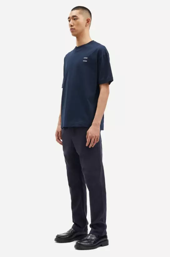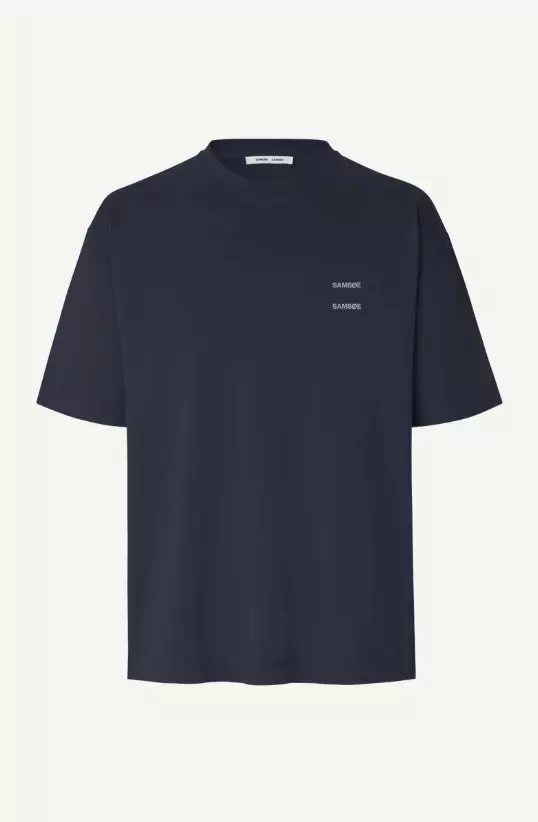 Joel T-Shirt fra Samsøe Samsøe- Kortermet T-skjorte med løs passform og lave skuldre. Ribbestrikket rund hals. Trykt Samsøe Samsøe-logo på brystet.