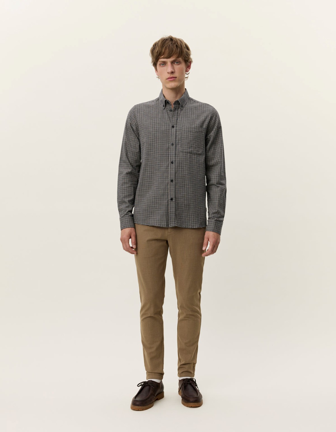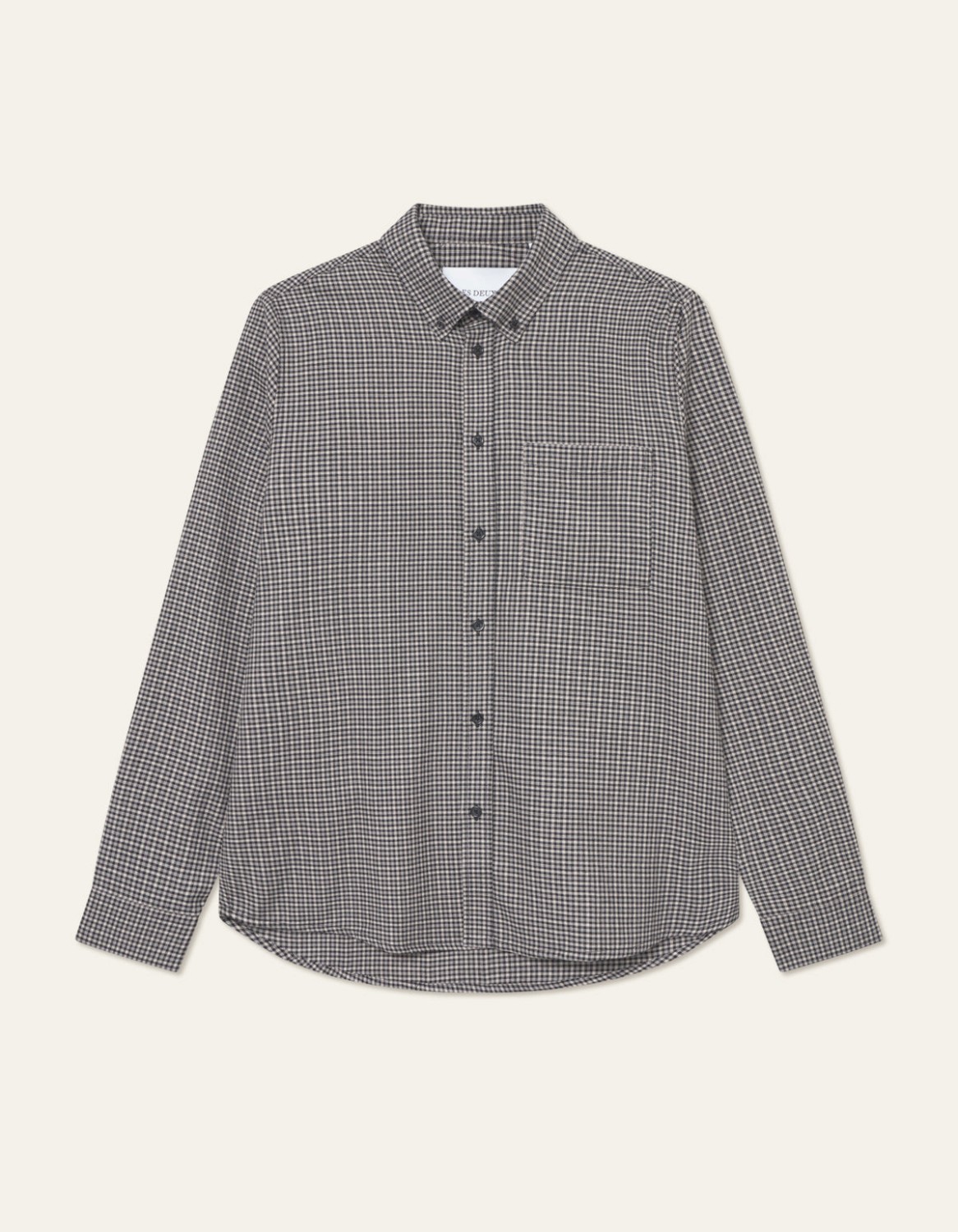 Konrad Check Flannel Shirt fra Les Deux. En regular fit-skjorte i børstet flanell med mini-rutete mønster, avsluttet med tonale knappe og klassiske skjortedetaljer.