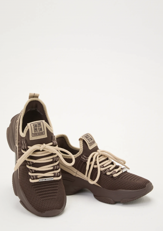 Mac-E, sneakers fra Steve Madden. Snøring med gummistrikk på toppen. Chunky såle. Gummiert merkelogo på siden. Sålehøyde 4 cm.