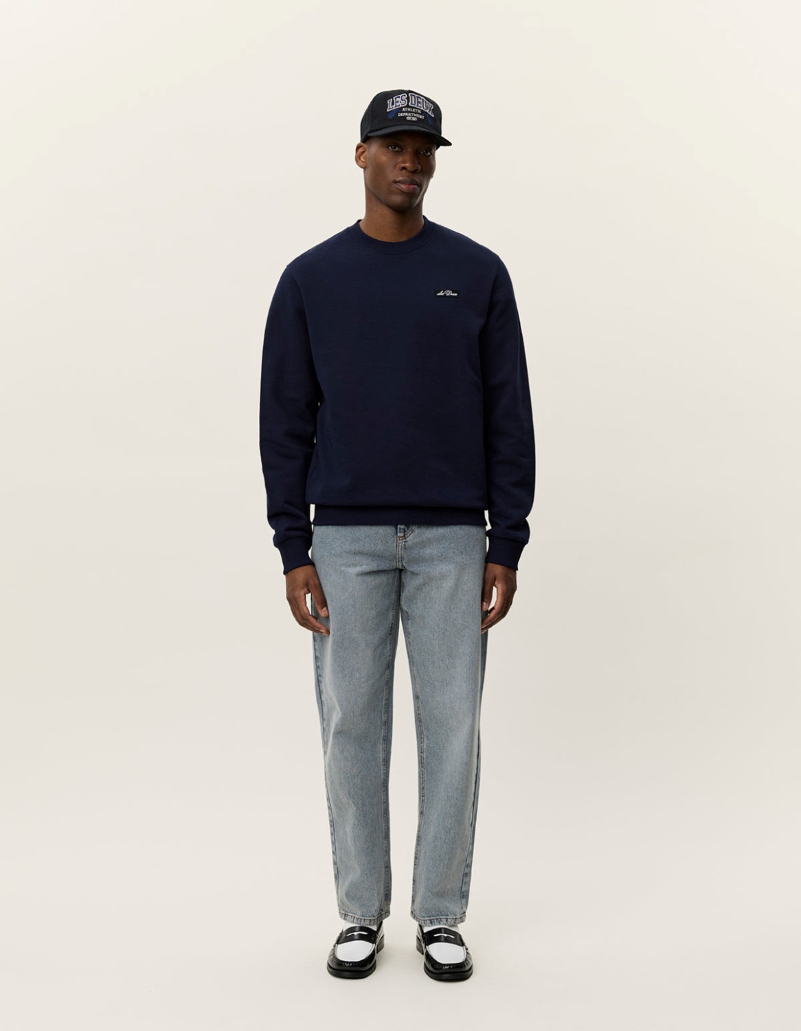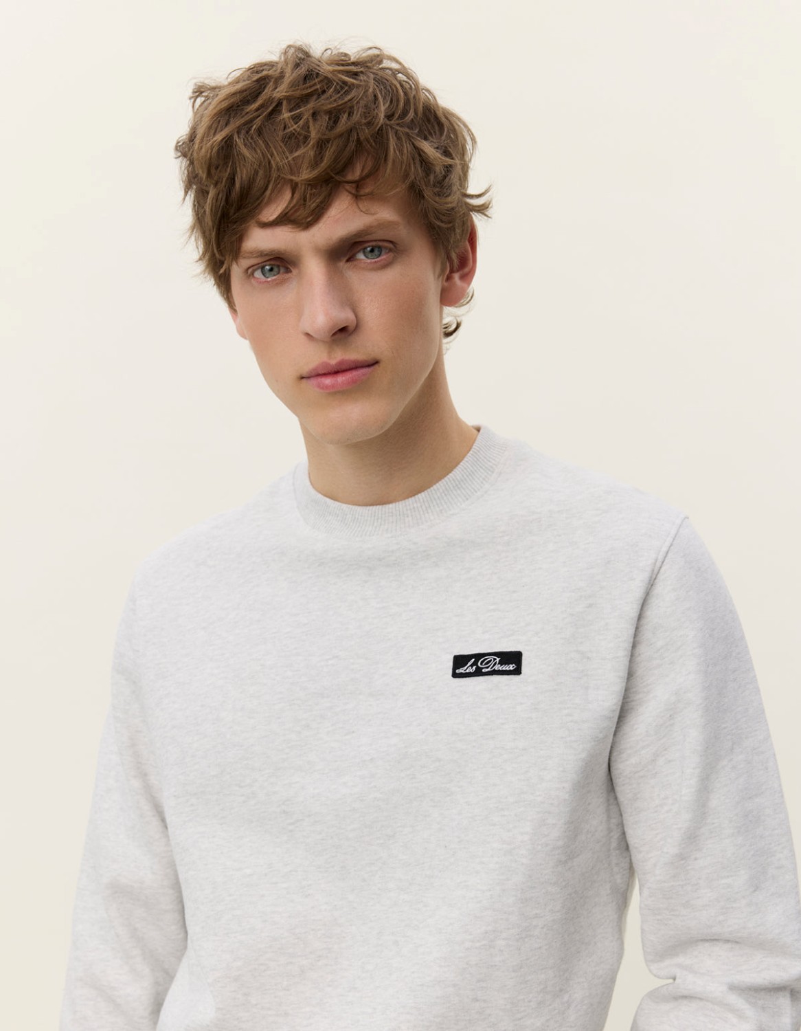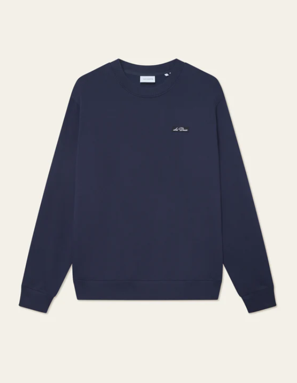 College genser fra Les Deuc. En minimalistisk genser laget av ren bomull. Den har en Crew Signature-lapp på brystet, en klassisk rund halsringning.
