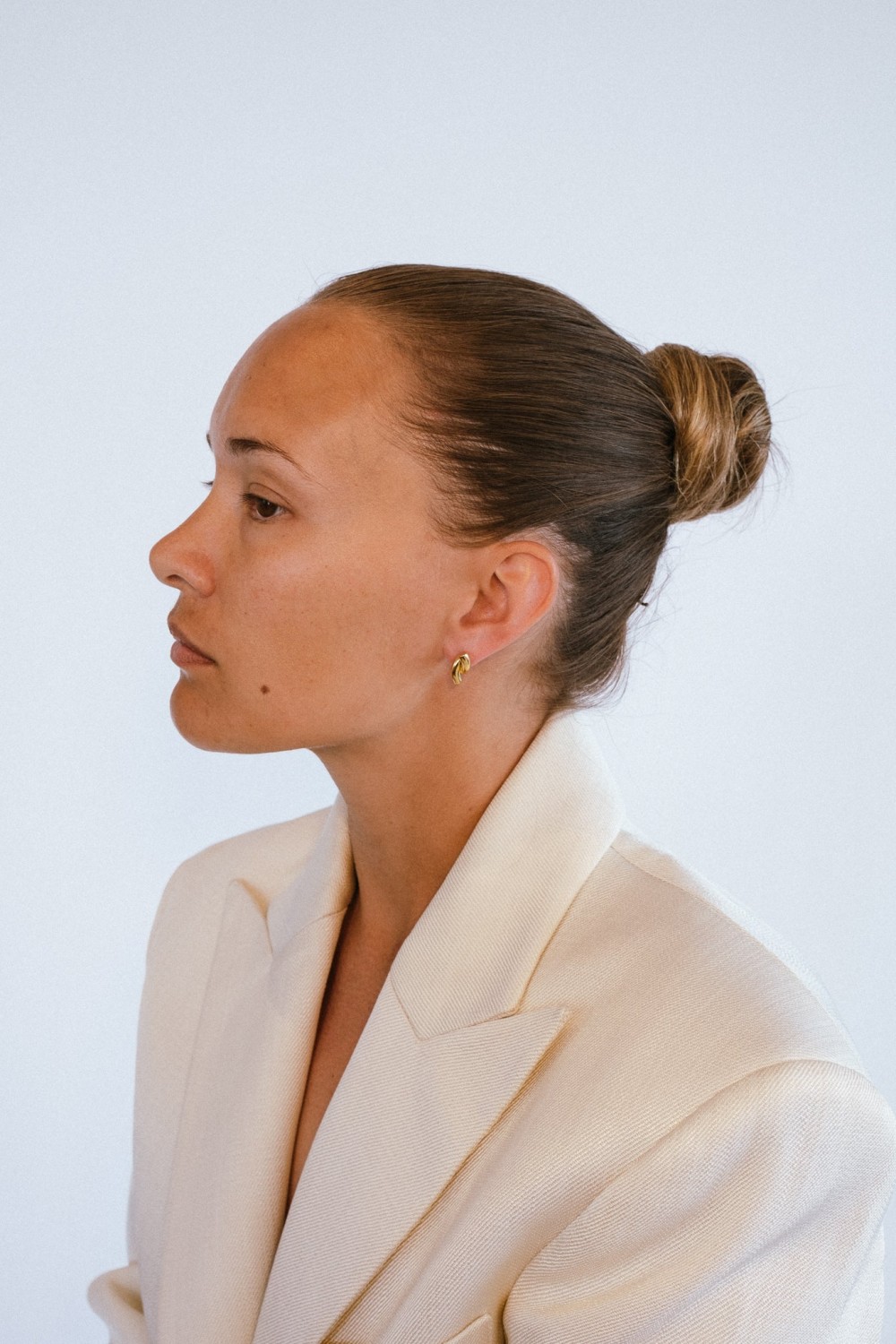 Designet for å følge ørets naturlige form, sitter de vakkert og sikkert på plass. Den polerte, voluminøse formen fanger lyset akkurat riktig, noe som gjør at de skiller seg ut til tross for sin minimale størrelse.
