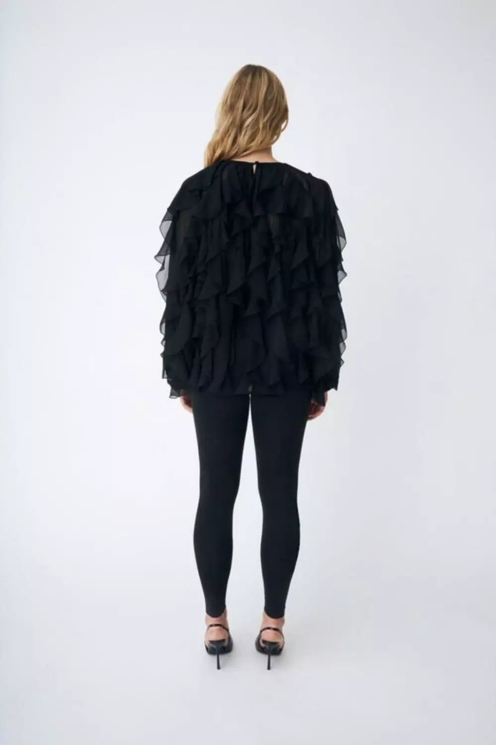 Rya Cras Blouse fra CRAS blander romantikk og moderne feminitet på en perfekt måte. Det delikate, gjennomsiktige stoffet gir et lett og luftig utseende, mens de vakre rysjedetaljene og stoffkledde knappene gir et eksklusivt preg. De lange ballongermene samles elegant ved mansjettene med knappelukkinger, noe som fremhever blusens grasiøse silhuett. En tidløs stil som fungerer like bra til festlige anledninger som til hverdagsbruk.