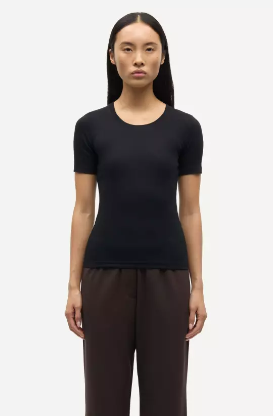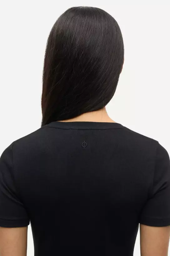Kortermet jersey-T-skjorte med smal passform. Rund hals. Brodert ø-logo bak. Hovedmateriale laget av en elastisk økologisk bomullsblanding.