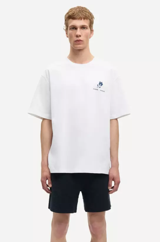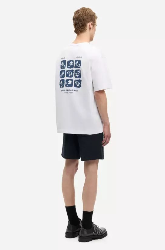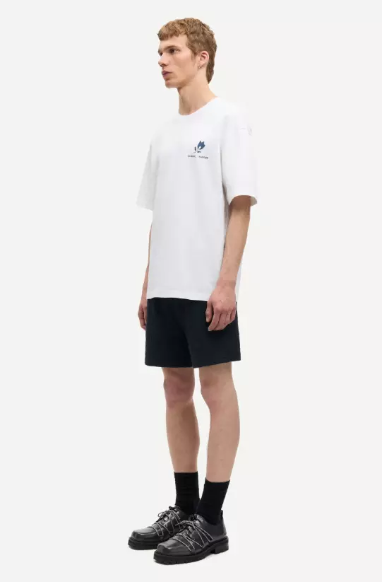 Kortermet jersey-T-skjorte med vanlig passform. Ribbestrikket rund hals. Trykt grafikk og logo foran og bak.