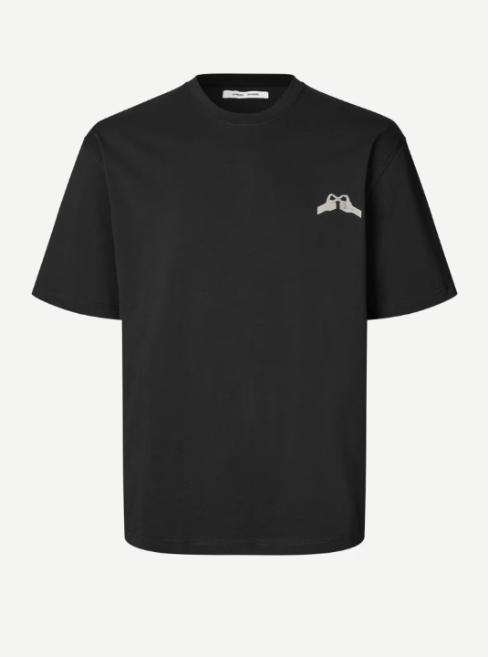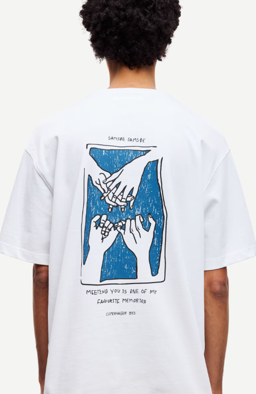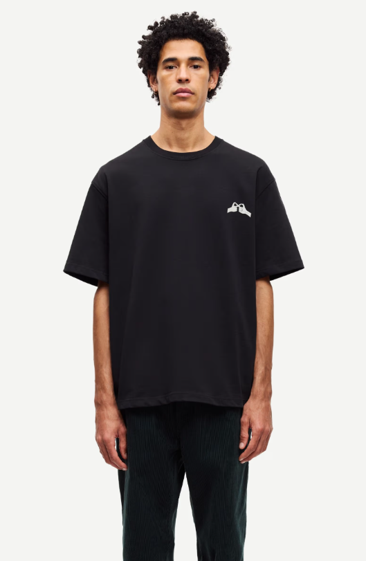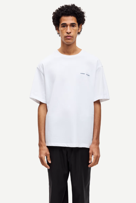 Saflorian T-Shirt fra Samsøe. Løs passform og lave skuldre. Ribbestrikket krage. Rund hals. Hovedmateriale laget av 100 % økologisk bomull.