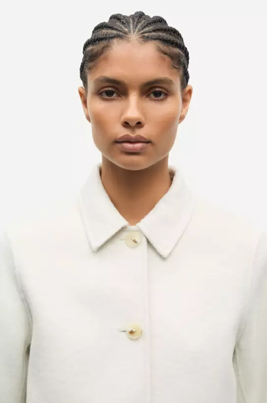 Tovet jakke med krage og vanlig passform. Knappelukking foran. Stikklommer foran. Hovedmateriale laget av en blanding av resirkulert ull.