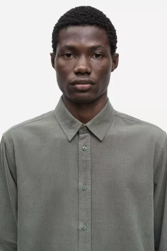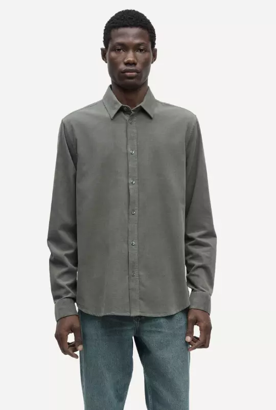 Kordfløyelsskjorte med vanlig passform. Knappelukking foran og mansjetter med knapper. Søm i nakken med plisserte detaljer. Buet kant. Hovedmateriale laget av 100 % økologisk bomull.