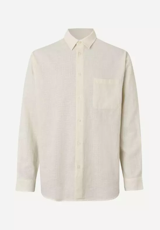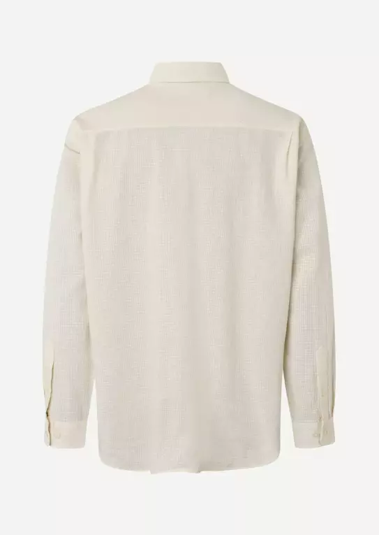 Langermet skjorte med løs passform og senkede skuldre. Knappestolpe foran og mansjetter med knapp. Påsydd lomme på brystet. Nakkesøm. Hovedmateriale laget av en blanding av lin og bomull.