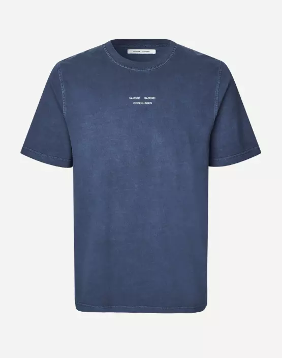 Kortermet jersey-T-skjorte med vanlig passform. Ribbestrikket rund hals. Trykt Samsøe Samsøe-logo foran. Hovedmateriale laget av 100 % økologisk bomull.