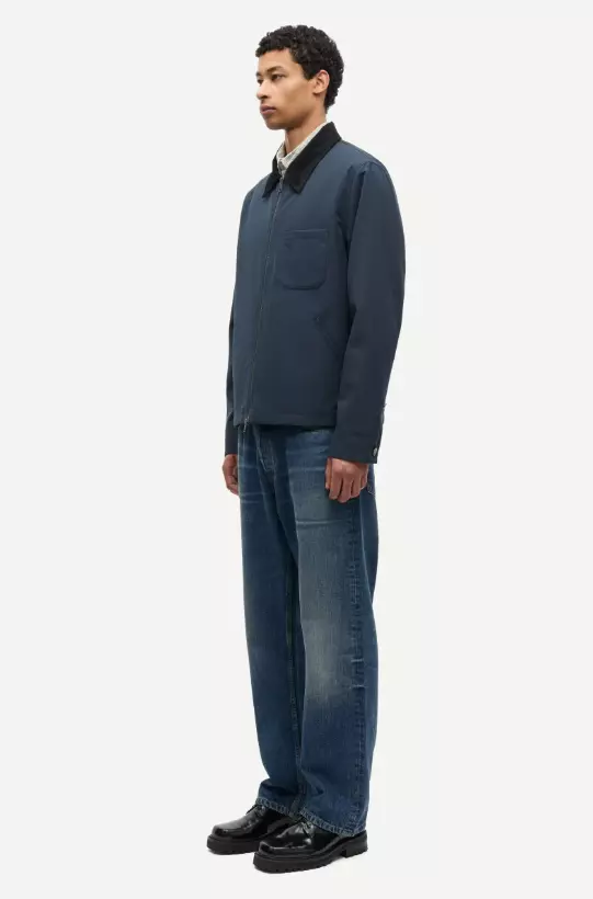 Skjortejakke med vanlig passform. Toveis glidelåslukking foran. Knapper og stropper i mansjettene og nederst for justering. Passpolerte lommer foran, én påsydd lomme på brystet, én passpolert lomme på innsiden. Hempe bak i nakken. Krage laget av bomullscordfløyel.