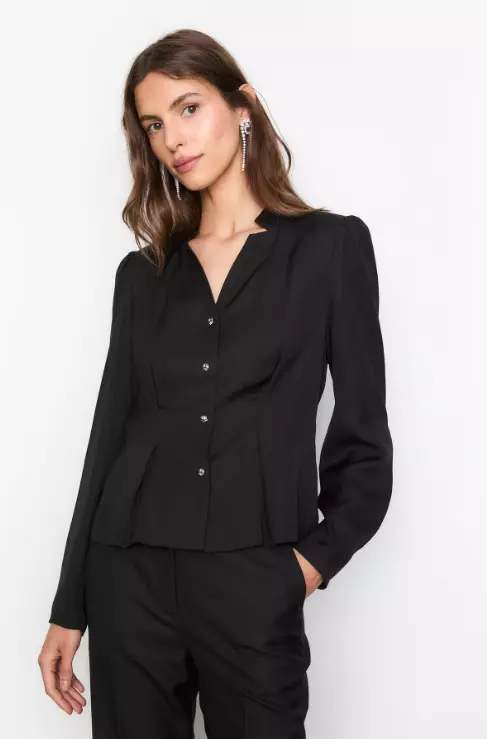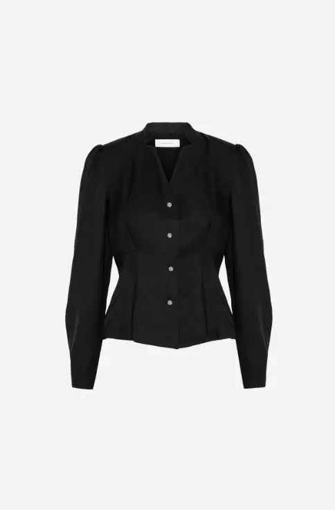 Sue Blouse bringer raffinert eleganse til garderoben din med sitt myke fall og feminine silhuett. Den har en flatterende V-hals med sølvfarget knappelukking, og er avsluttet med delikate leggdetaljer foran og bak.