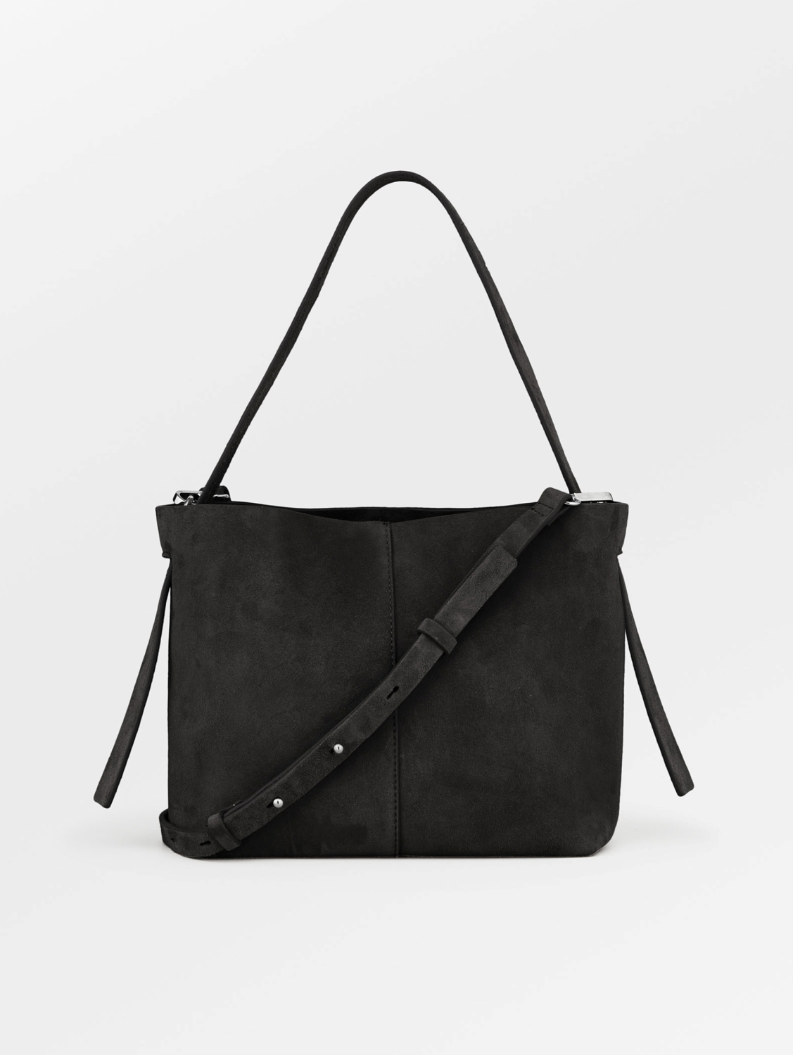 Suede Fraya Small Bag i 100% semsket skinn fra Becksöndergaard er en romslig veske som har en magnetisk lukking og består av 4 rom og en glidelåslomme. Vesken måler 24×22 cm. Suede Fraya Small Bag kan brukes som crossbody og skulderveske med den lange justerbare stroppen, som du finner i den indre lommen på vesken. Den lange stroppen kan også tas av.