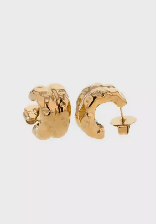 Små doble chunky bøyler i 14K PVD-belagt rustfritt stål, med en organisk hamret finish. Et stilig tillegg til ethvert antrekk.