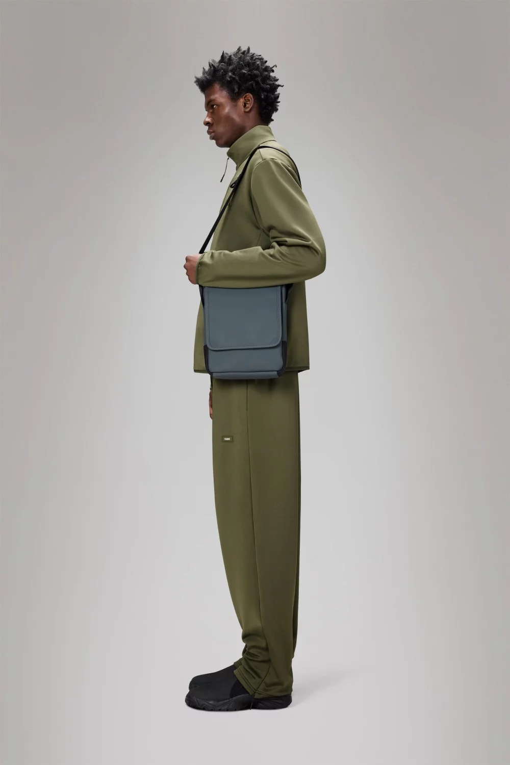 trail Reporter Bag fra Rains. Dette designet lener seg inn i Trail-familiens sportslige og praktiske stil. Åpne den praktiske trykknappklaffen foran for å avdekke glidelåslommen og hovedrommet med glidelås.